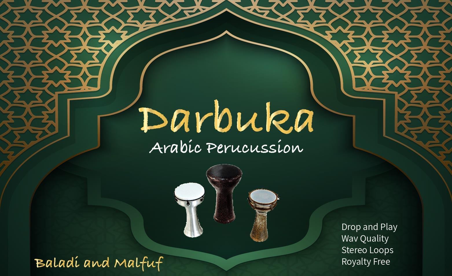 This package contains real darbuka loops in baladi rhythm, playing at 150 bpm.